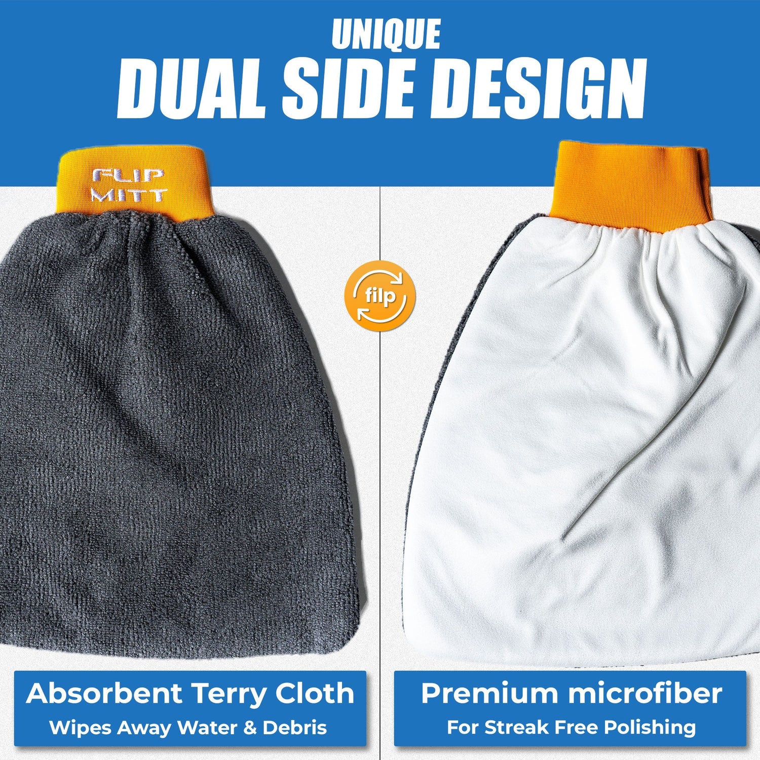 This unique dual-sided cleaning mitt features a soft, extra absorbent terry cloth on one side and a high-quality microfiber cloth on the other. Clean... FLIP... Polish - DONE!