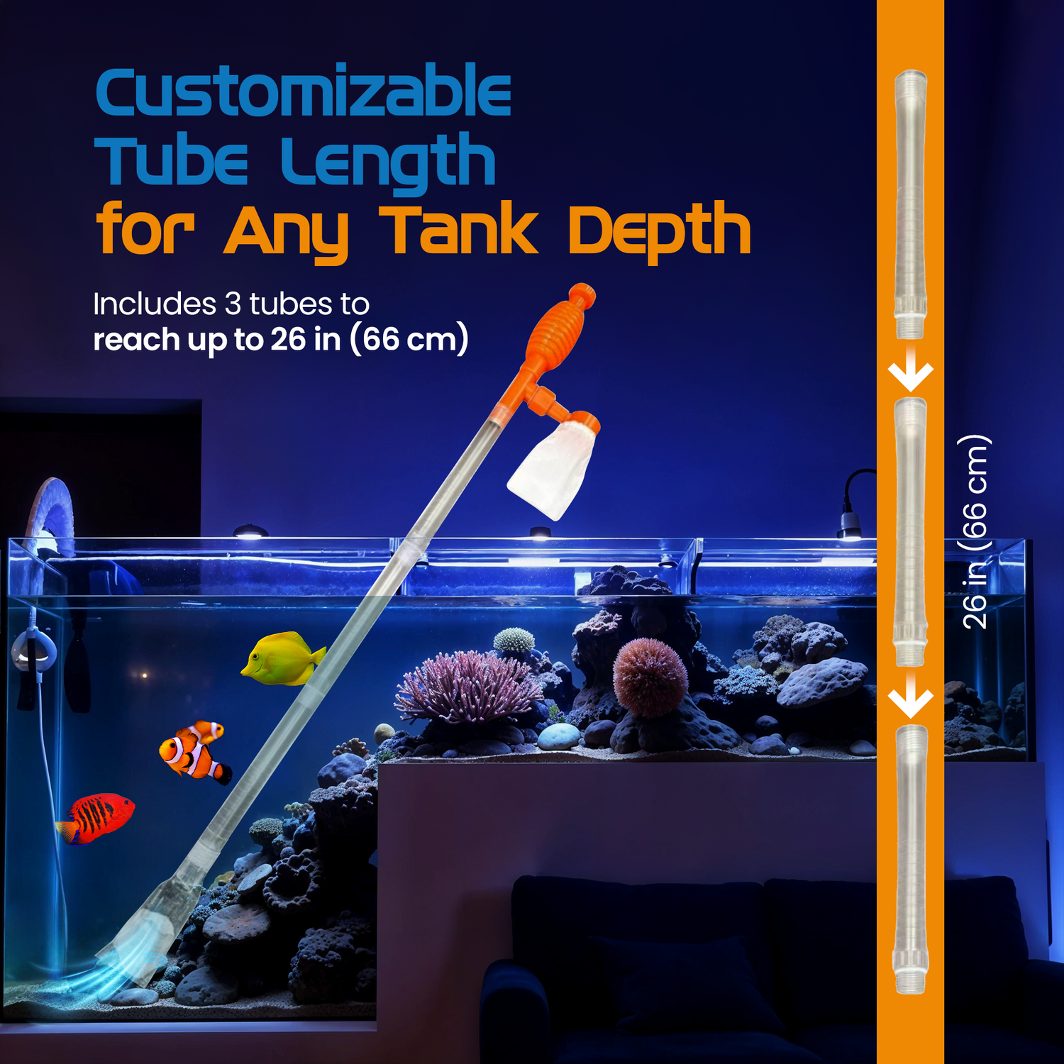 The Flipper Gravel/Sand Cleaner & Siphon Kit makes aquarium maintenance easier and more enjoyable with its innovative dual-purpose design. This versatile cleaning system effectively removes debris from gravel or sand while allowing you to perform water changes in one simple operation. Ideal for pico and nano aquariums, this kit ensures thorough substrate cleaning without disturbing your aquatic environment. Depending on stocking level and water conditions, it's recommended to clean ⅓ to ½ of the gravel at a time to maintain water stability.